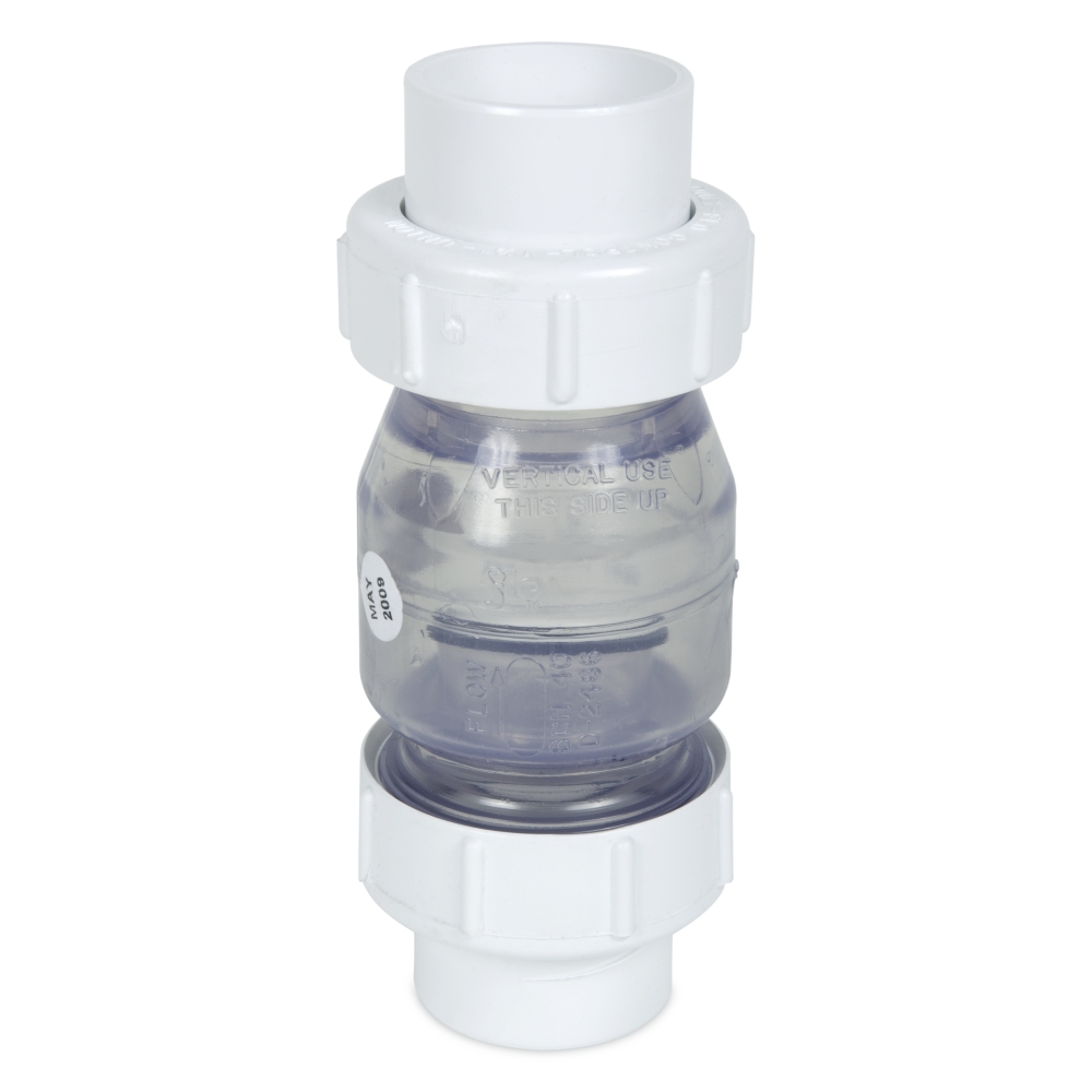 Sinnvolle Rückschlagventile sind die transparenten Ventile mit einem innenliegenden Klappdeckel. Bei diesen Teilen wird der Durchfluss nicht durch eine Feder gehemmt, wie es bei denen aus PVC üblich ist. Rückschlagventile setzt man überall da ein, wo beim Ausfall einer Pumpe das Wasser nicht zurücklaufen soll.