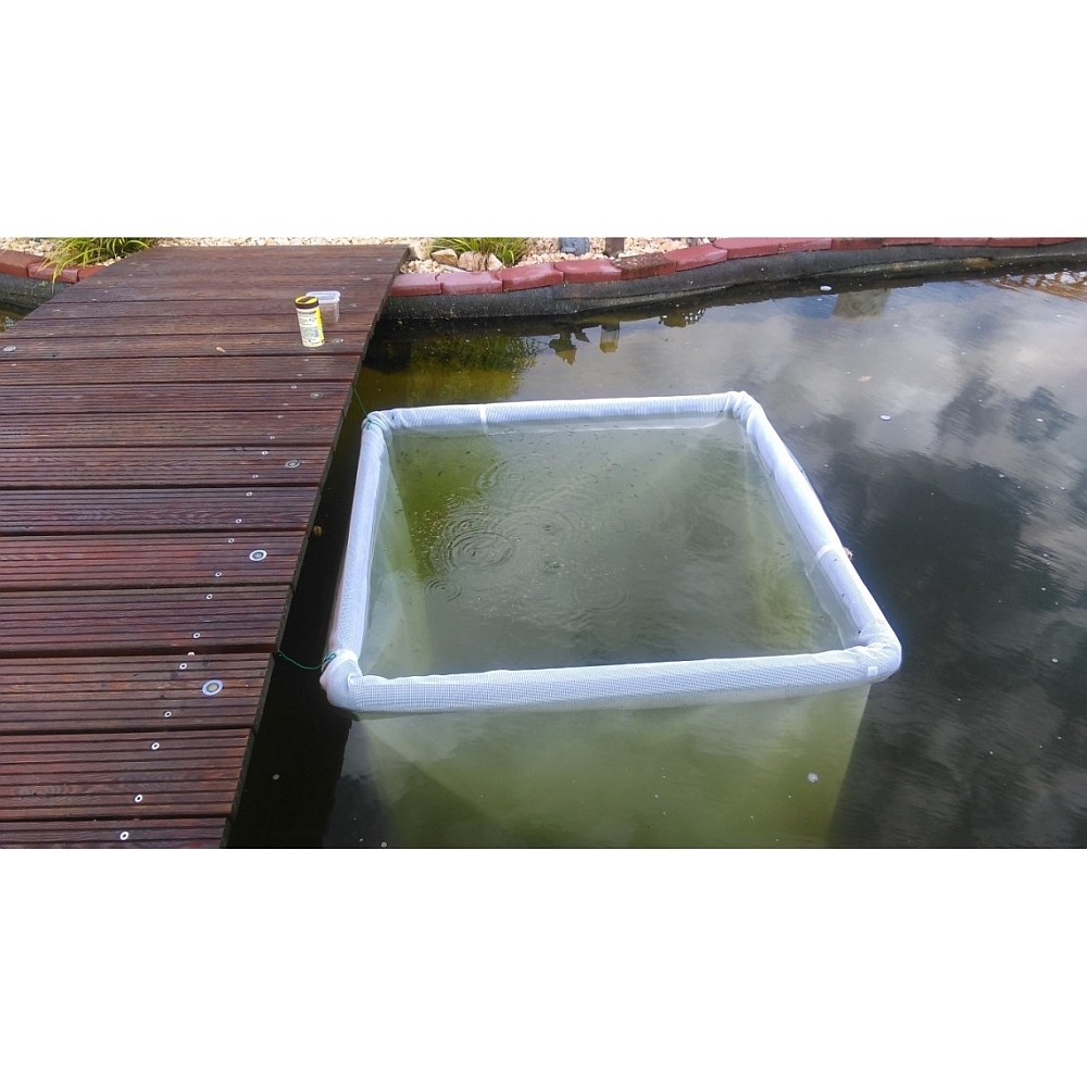 Schwimmendes Aufzuchtsgehege mit Rahmen weiß 115 x 115 x 50 cm 1,5 mm Maschenweite