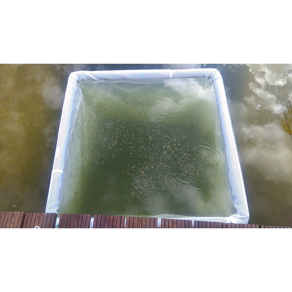 Schwimmendes Gehege zur Aufzucht junger Koi