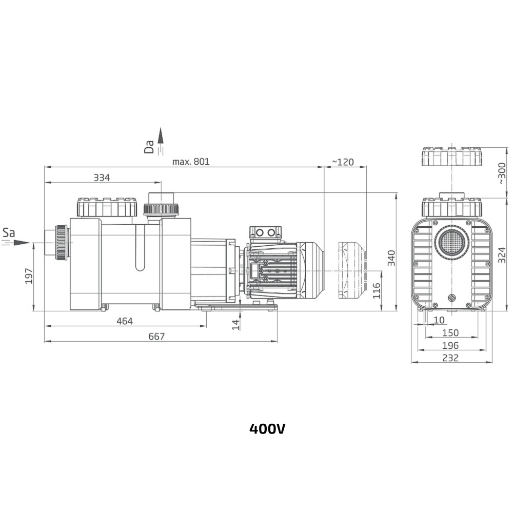 • Die 400V Pumpen sind effizienter als 230V Pumpen