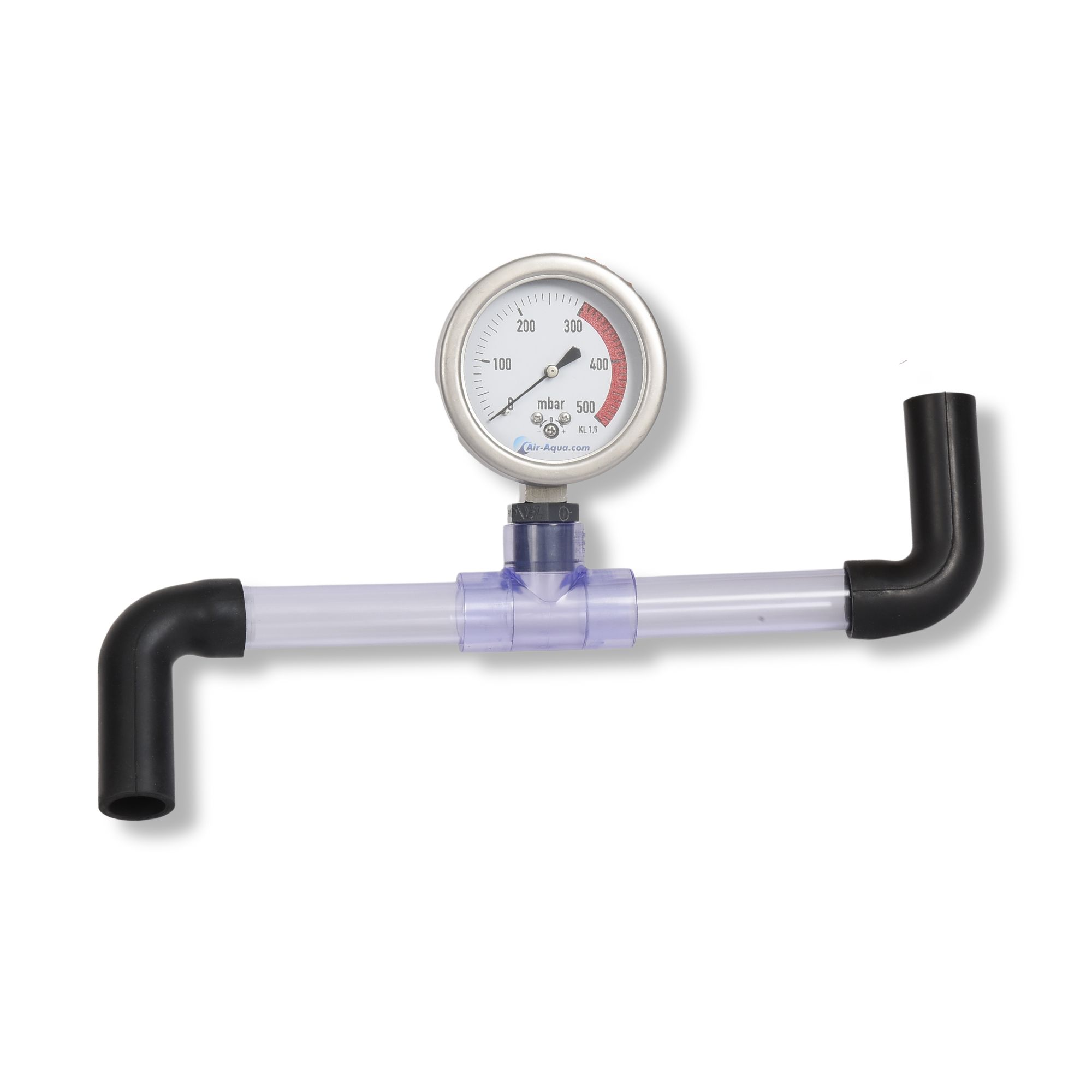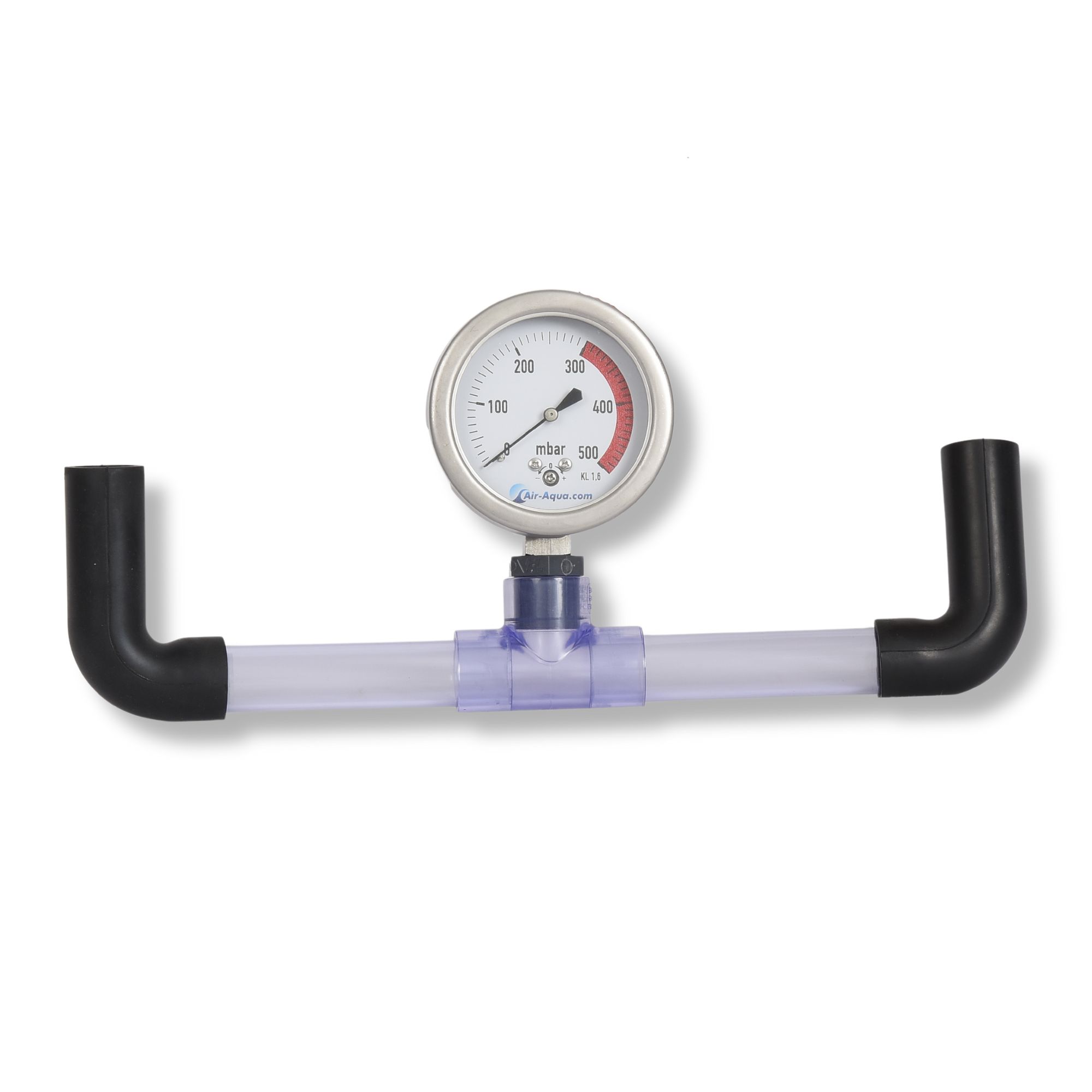 Mit diesem Luftdruckmesser können Sie Ihre Luftpumpe kontrollieren. Bauen Sie diesen Luftdruckmesser einfach in Ihre Leitung der Luftpumpe ein. Jede handelsübliche Luftpumpe baut einen Gegendruck bis ca. 300 mbar auf.