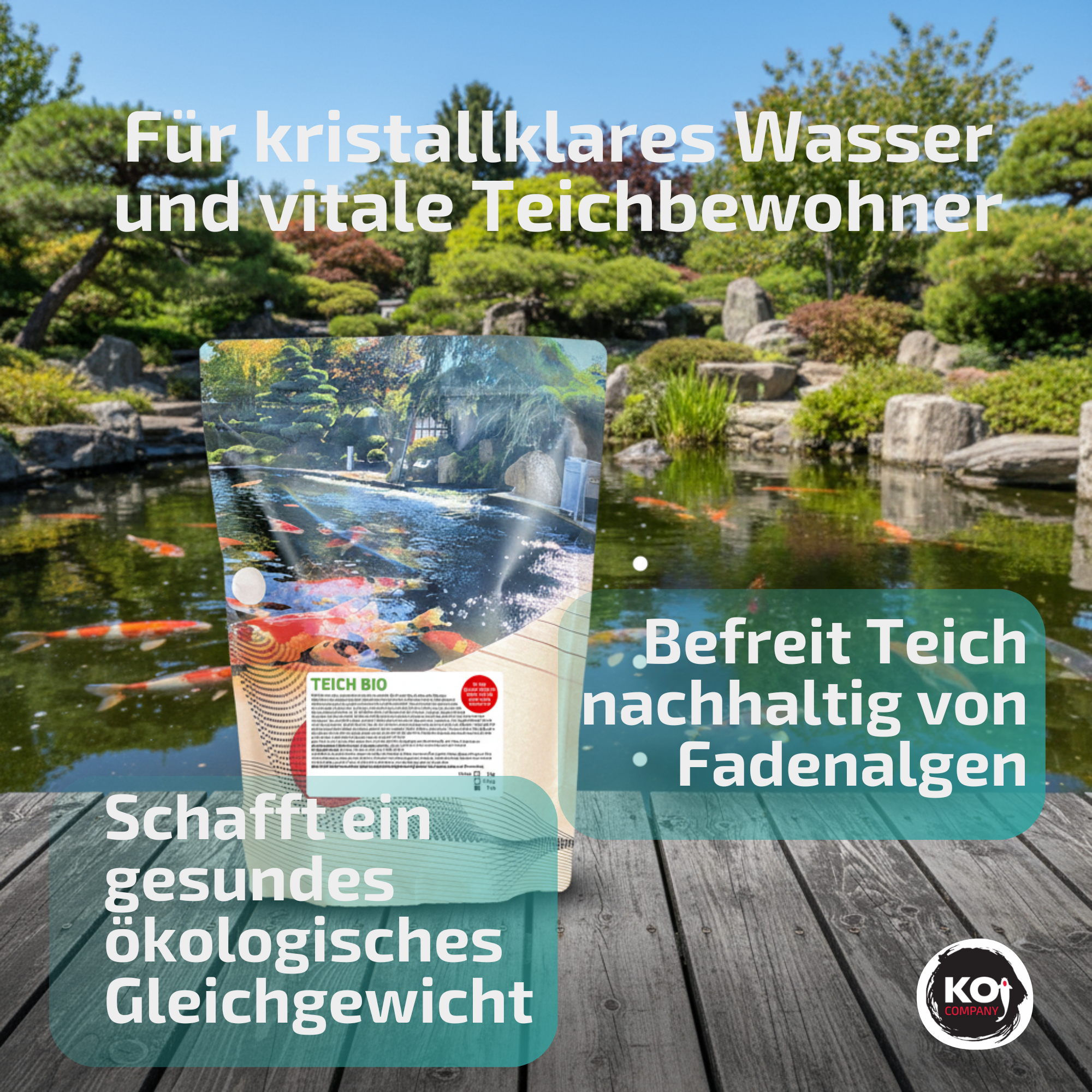 Teich Bio, ist unser neuer Name für Pond Repair, die Alternative gegen Fadenalgen. Das Produkt ist eine biologische Wasserkontrolle. Es fördert den Aufbau der Wasserqualität und schafft optimale Lebensbedingungen für alle Teichbewohner.
