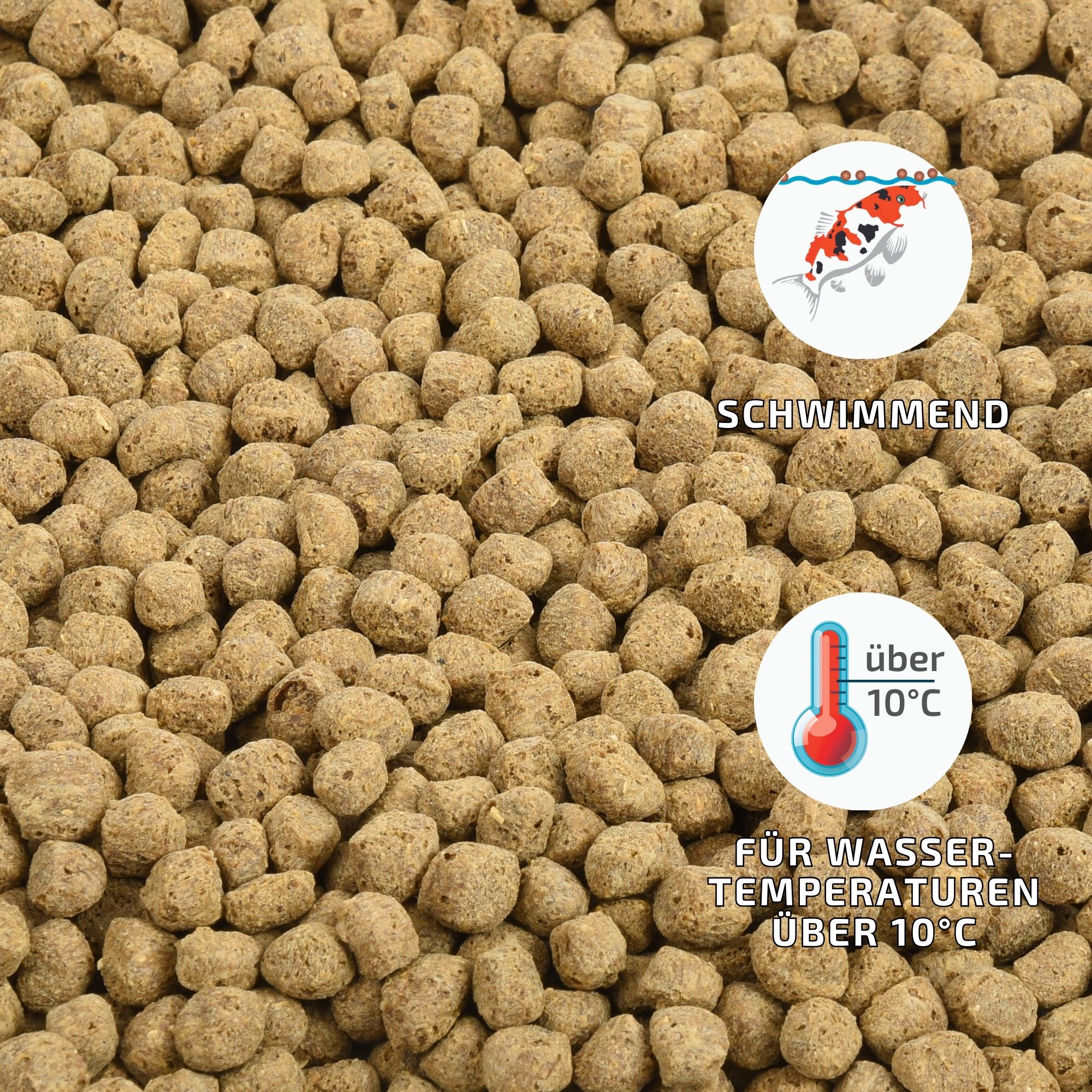 wird sehr gern von den Koi genommen Habe Trikoi dieses Jahr ausschließlich verwendet und bin mit Gesundheit der Fische und Wachstum gut zufrieden.