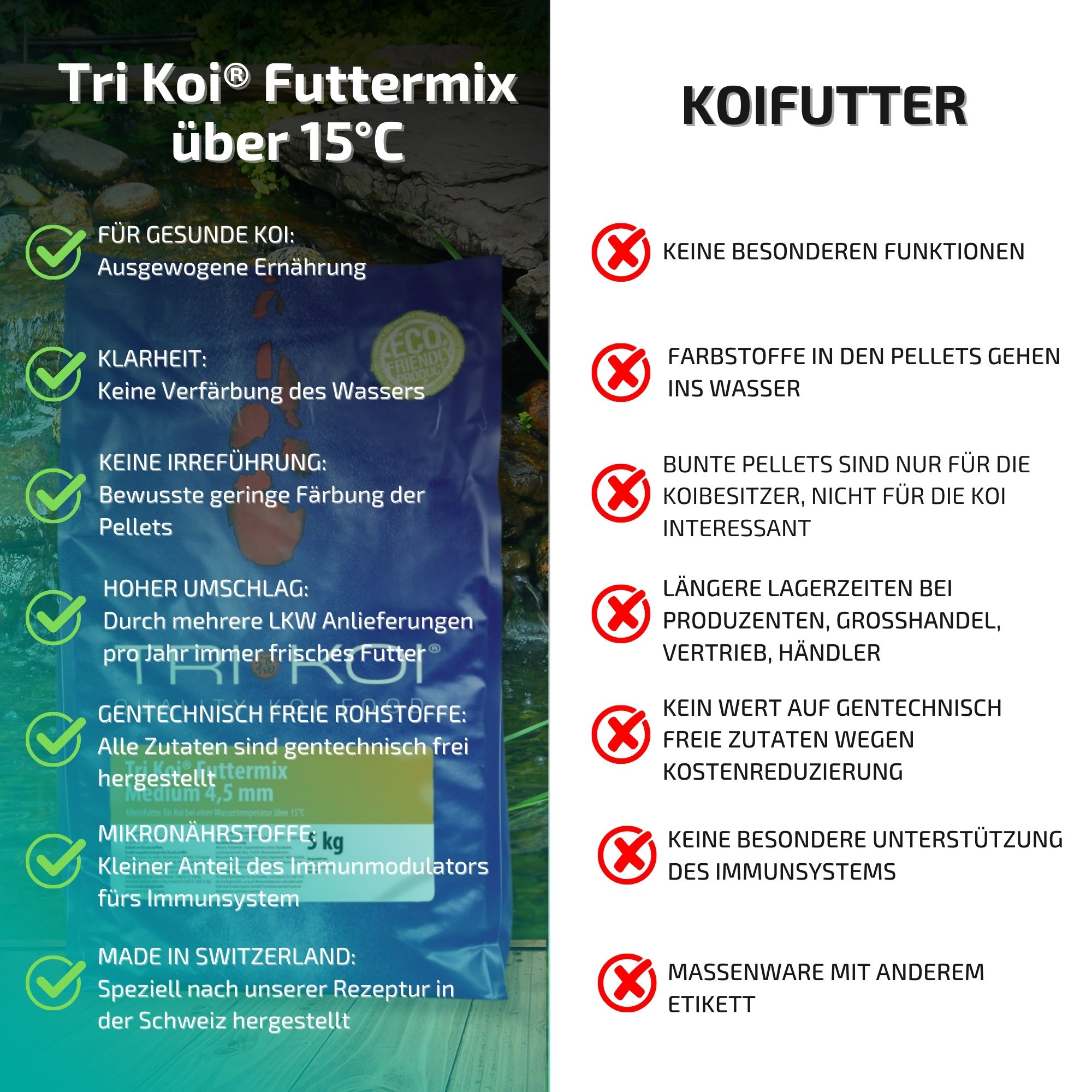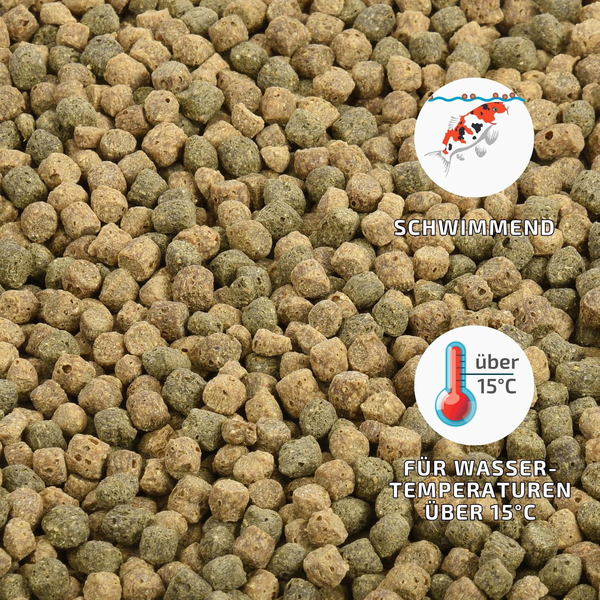 Der Tri Koi® Futter Mix Medium ist für Wassertemperaturen über 15°C geeignet -Sommermix-. (schwimmend)