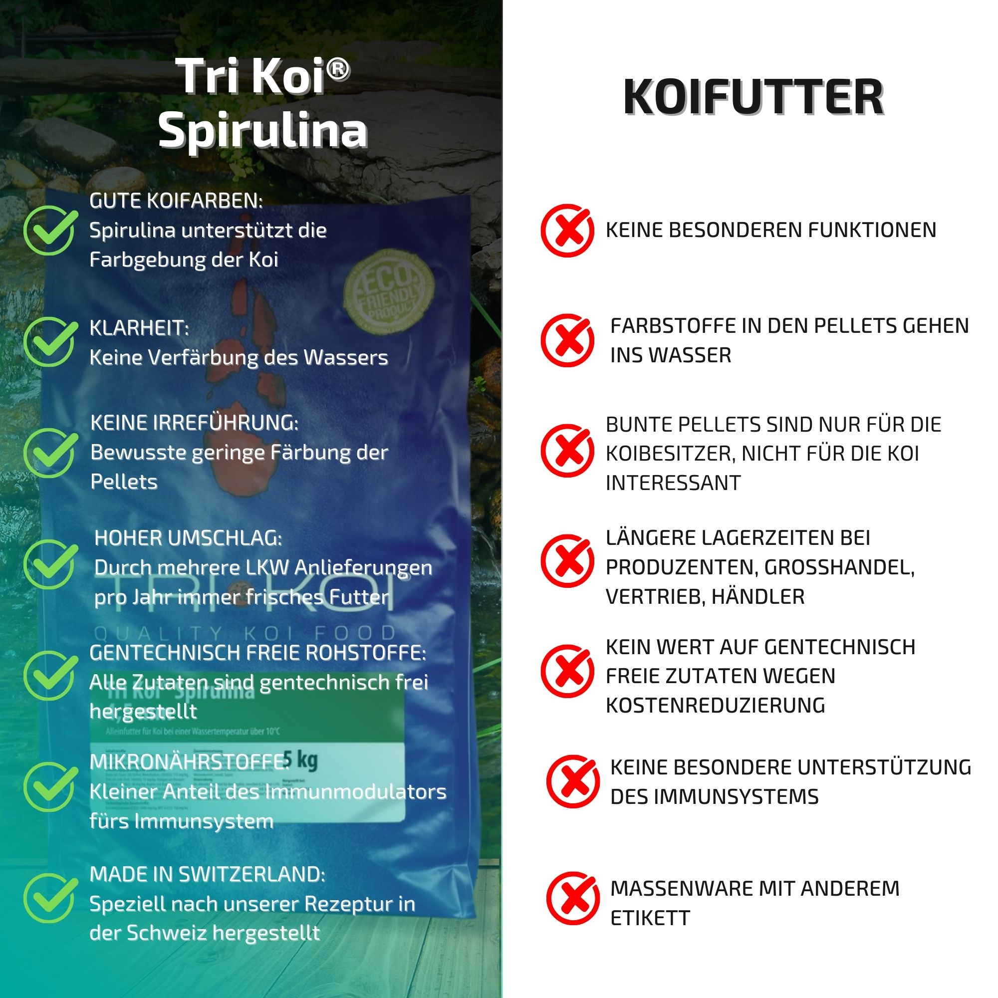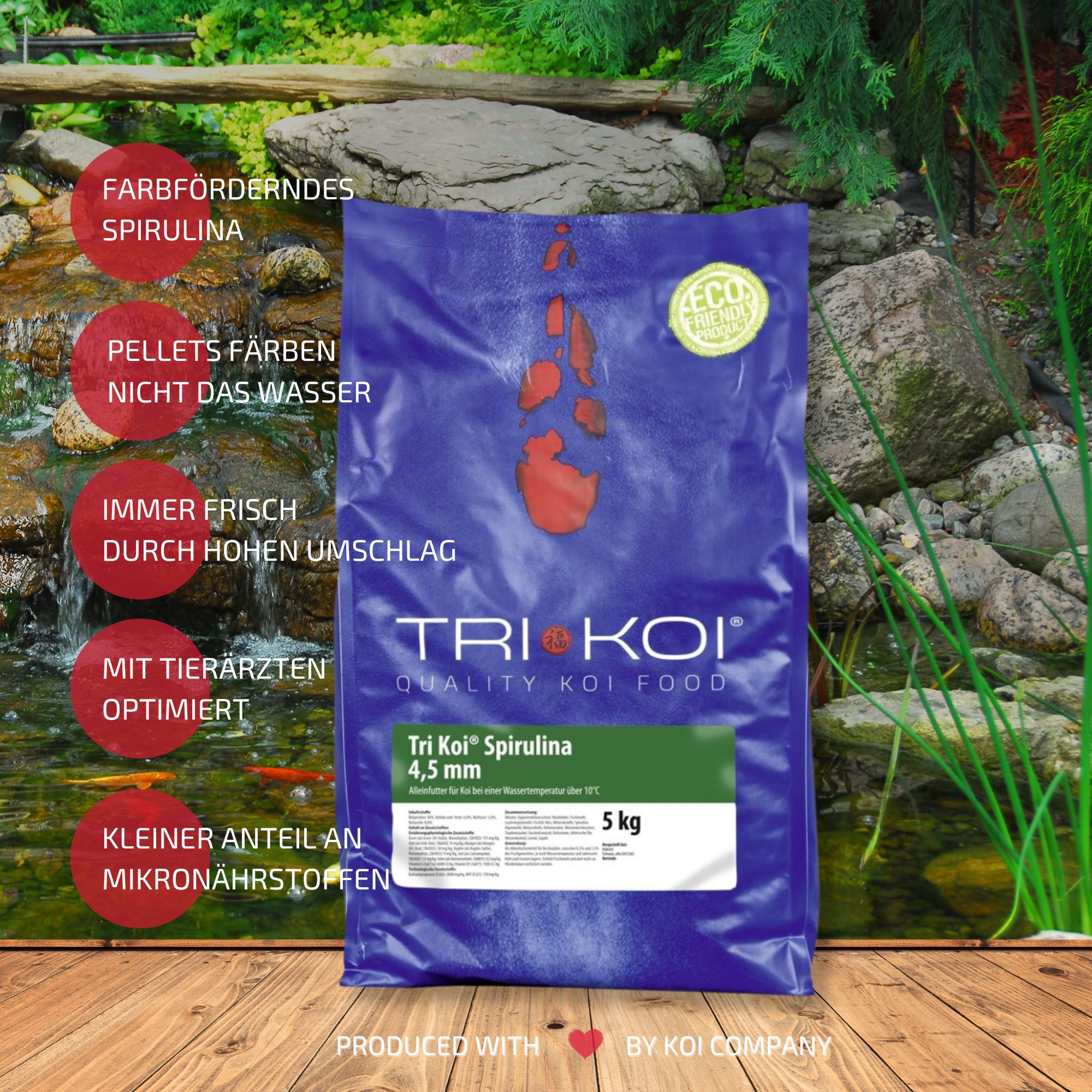 Bedingt durch unseren hohen Verbrauch erhalten Sie unser Tri Koi® Futter Spirulina immer absolut frisch.