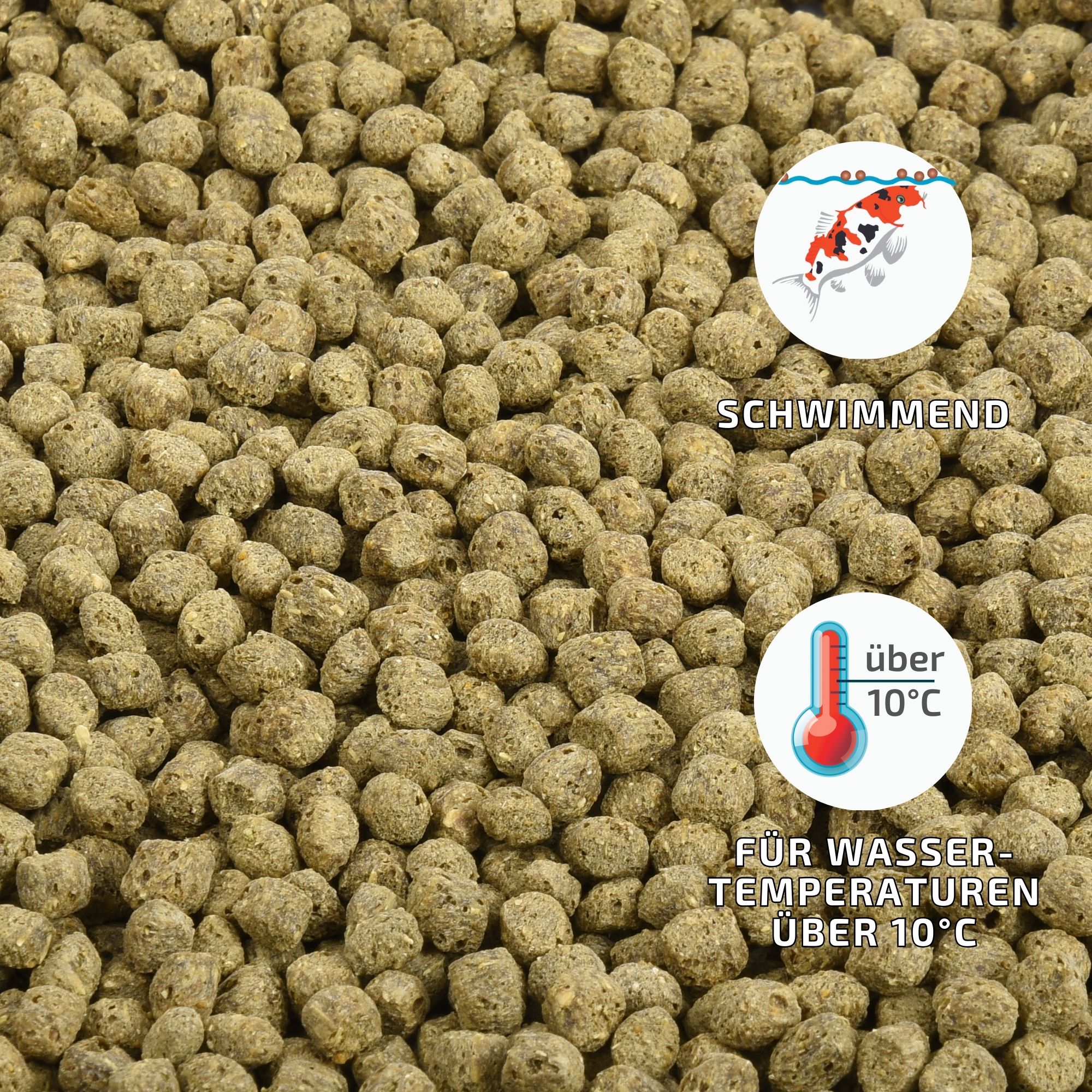 Füttern Sie Ihre Koi in Abhängigkeit von der Wassertemperatur 1-3 x täglich. Als Alleinfuttermittel für Koi Karpfen, zwischen 0,2% und 1,5% des Fischgewichtes, je nach Wassertemperatur und Jahreszeit.