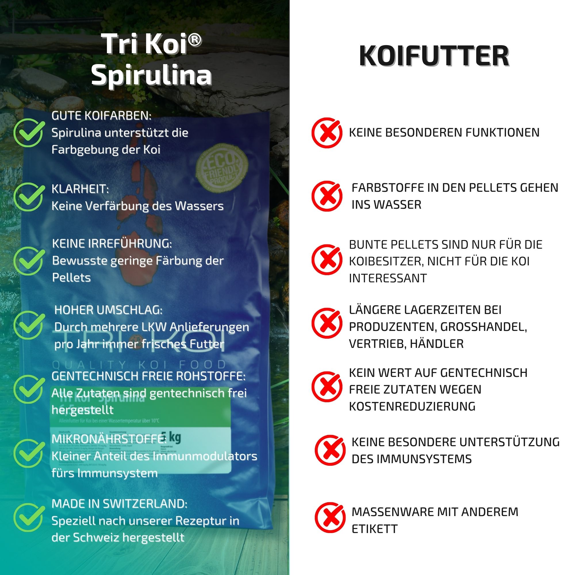 Bedingt durch unseren hohen Verbrauch erhalten Sie unser Tri Koi® Futter Spirulina immer absolut frisch.
