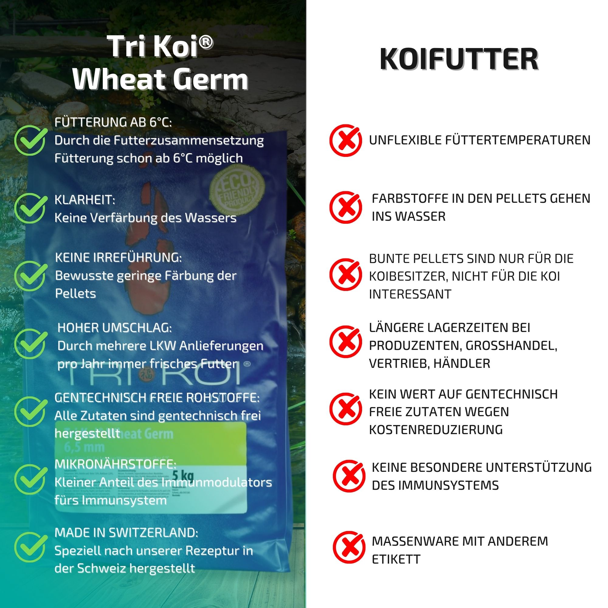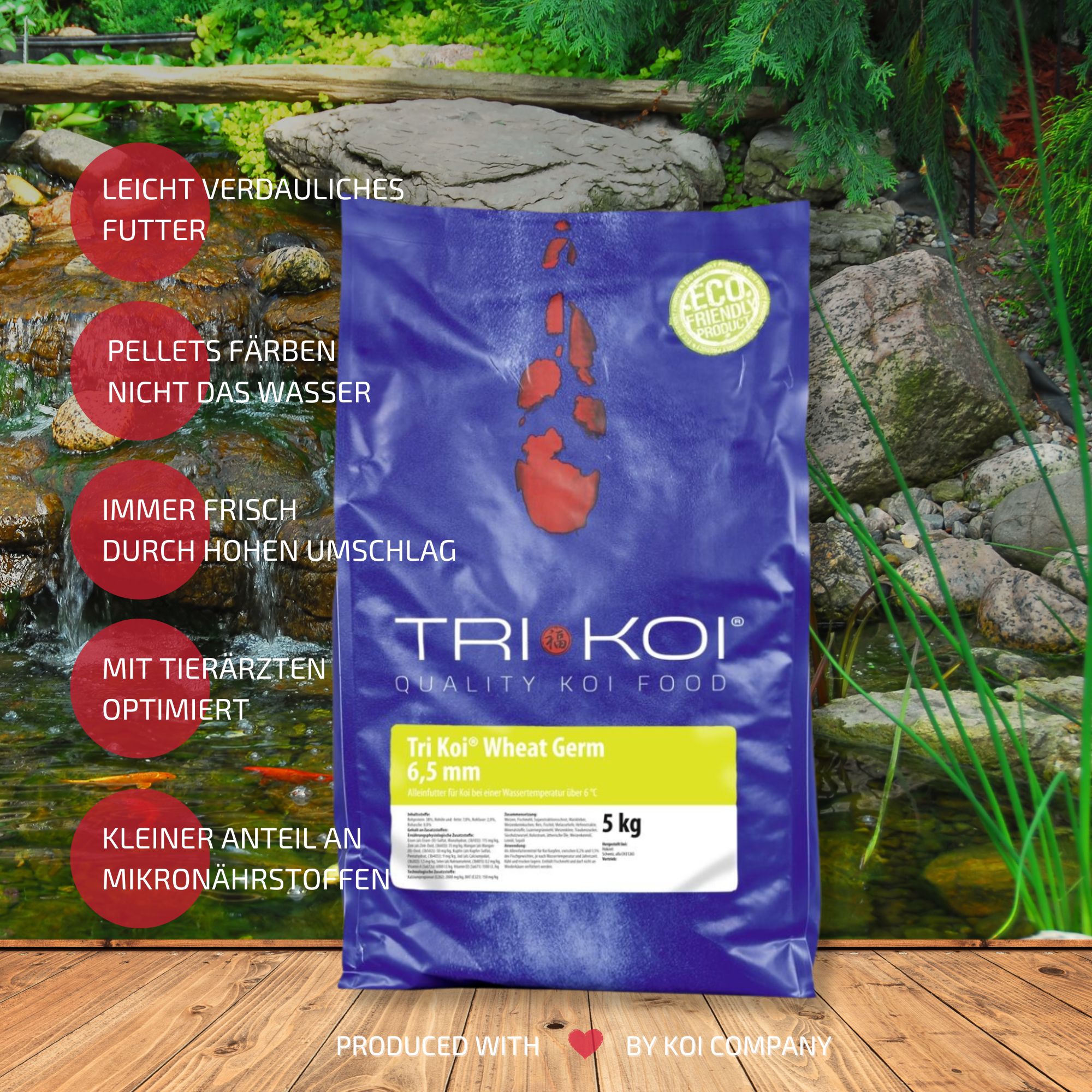 Bedingt durch unseren hohen Verbrauch erhalten Sie unser Tri Koi® Futter Wheat Germ immer absolut frisch.