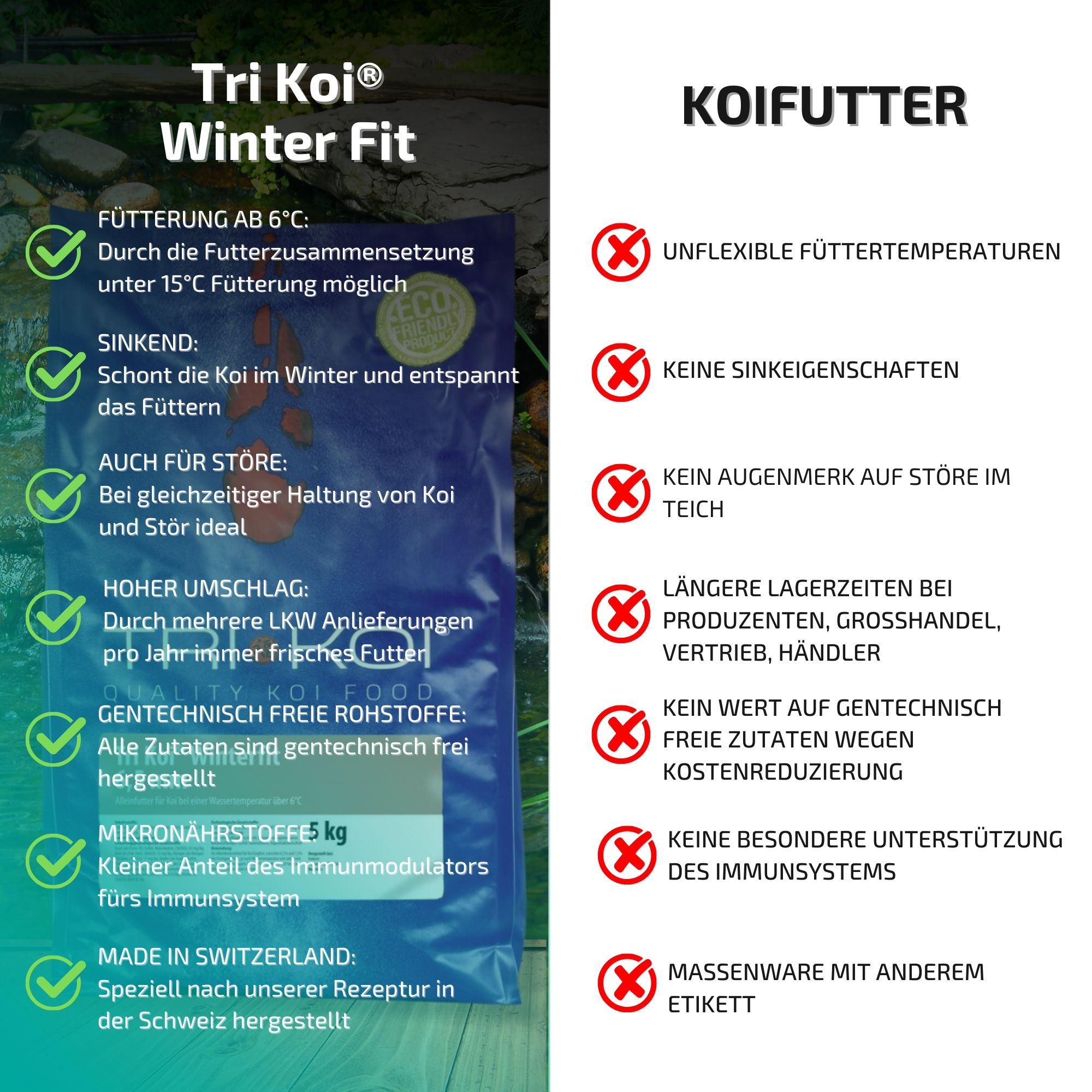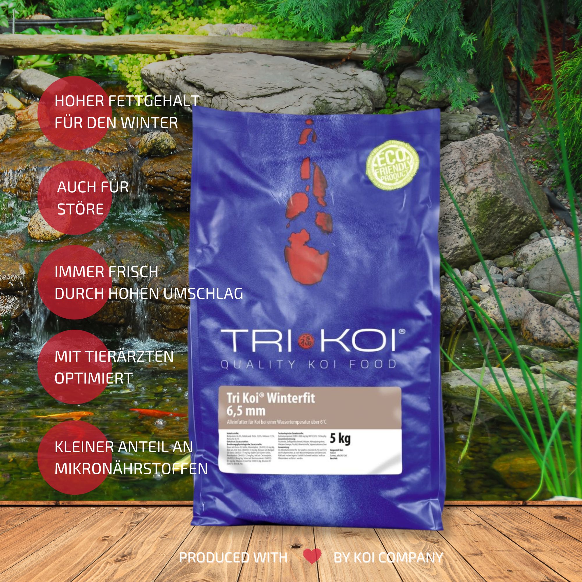 Bedingt durch unseren hohen Verbrauch erhalten Sie unser Tri Koi® Futter Winter Fit immer absolut frisch.
