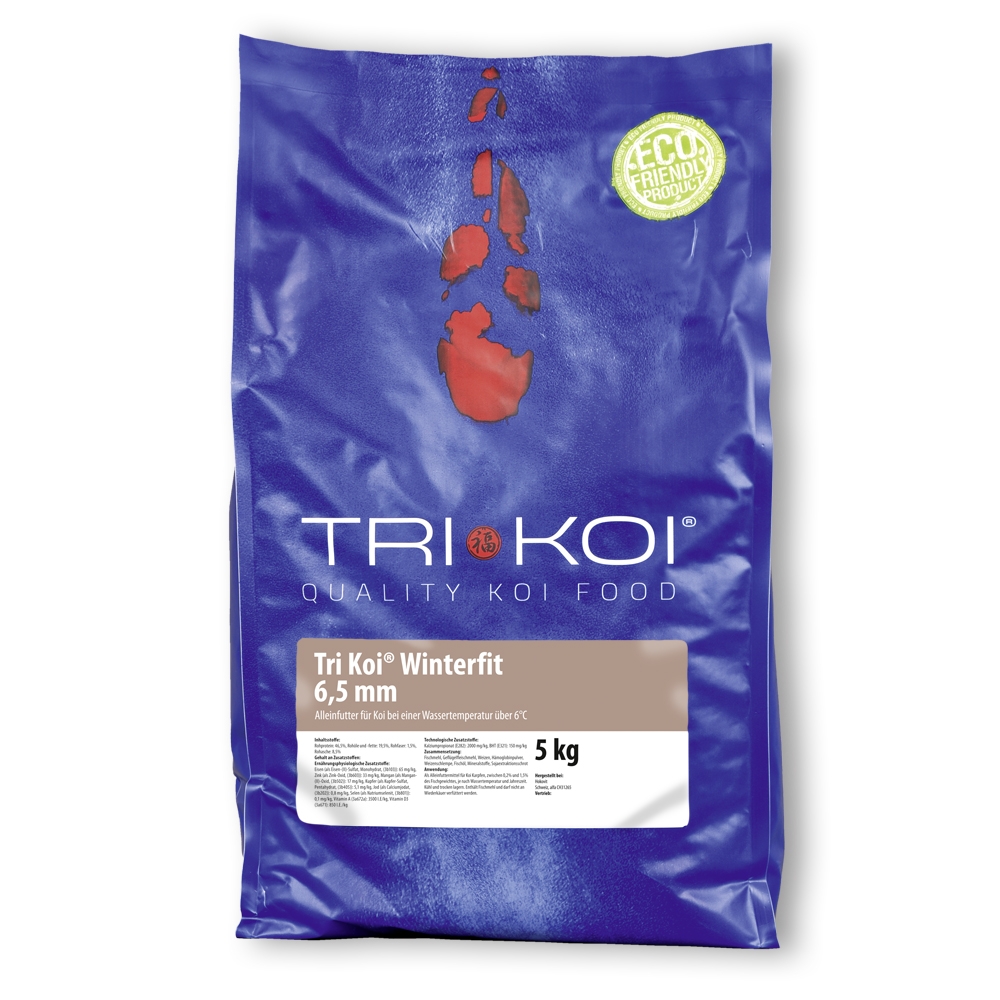 Tri Koi® Winter Fit ist unser aufgefettetes Sinkfutter für die kalte Jahreszeit. Die Zusammensetzung hat sich seit Jahren bewährt, der Rohfettgehalt beträgt jetzt 19,5 %. Diese tierischen Fettanteile kann der Koi schnell in Energie umsetzen und schafft sich somit ein ideales Polster für die kalte Jahreszeit und es hilft, im zeitigen Frühjahr entsprechende Kondition aufzubauen.