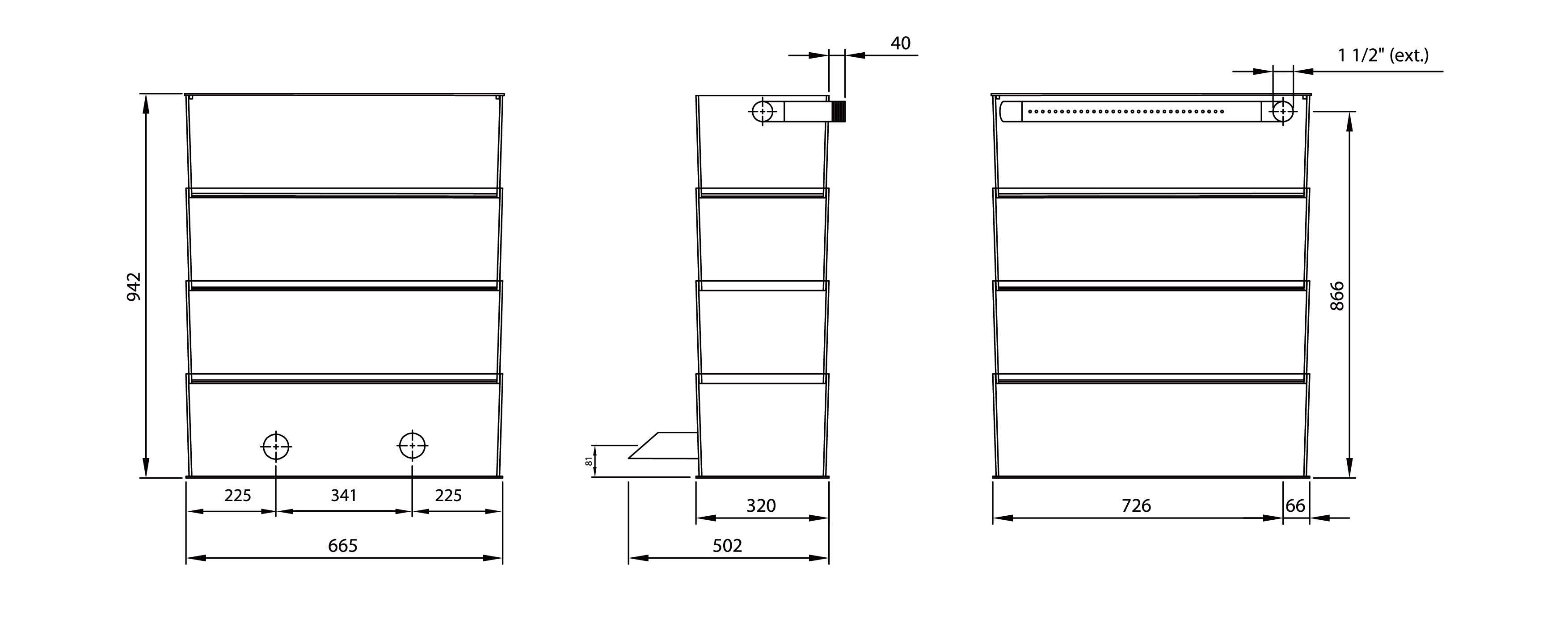 Maße: L x B x H 665 x 502 x 942 mm