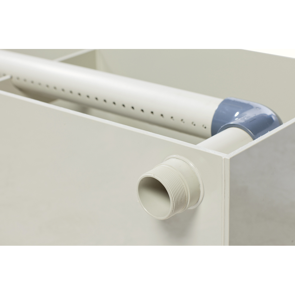 Dabei kann Ihnen ein Tricklefilter helfen. Es sorgt für die biologische Stufe nach einer Vorreinigung durch z.B. Siebe, Trommelfilter oder Papierfilter. Auch als Erweiterung Ihrer biologischen Filterstufe sind diese Türme ideal. Wenn Sie manchmal Probleme mit Ihren Ammonium- oder Nitritwerten haben, können Sie solch einen Turm hinter Ihren bestehenden Filter setzen, um Ihre Nitrifikation zu perfektionieren. Bei einem bestehendem Schwerkraftfilter schließen Sie den Rieselfilter einfach nach der Pumpe an. Die Auslaufrohre müssen frei in den Teich laufen.