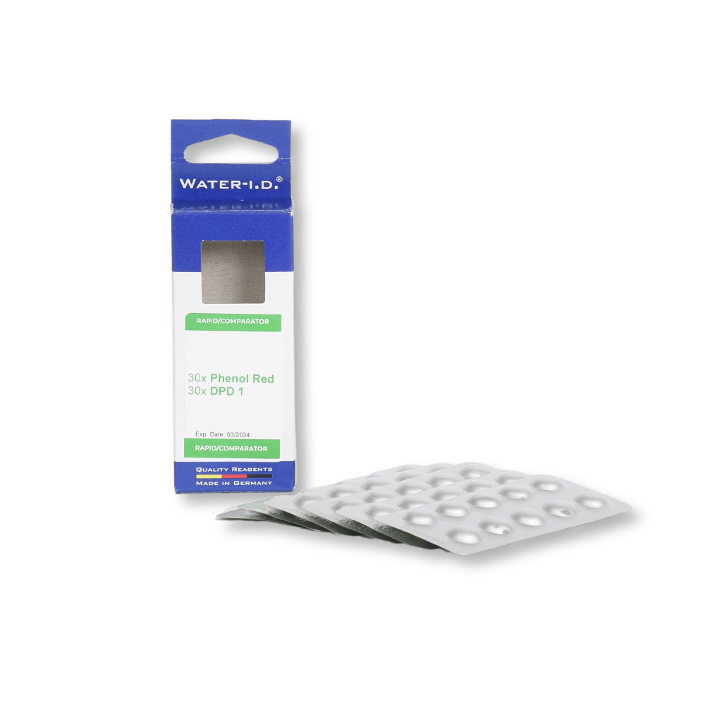 Drei- Kammer-Tester mit auswechselbarer Farbvergleichsskala misst den pH-Wert sowie freies Chlor. Beide Werte werden parallel gemessen. Für genaues Messen und längere Haltbarkeit.